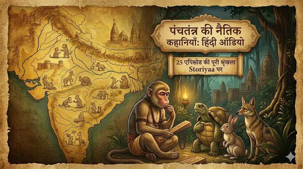 Storiyaa पर पंचतंत्र की नैतिक कहानियाँ हिंदी ऑडियो में 25 एपिसोड की श्रृंखला में हैं। हर एपिसोड एक अलग नैतिक सूत्र को जीता है — और हर बार एक नया पात्र, एक नई स्थिति।